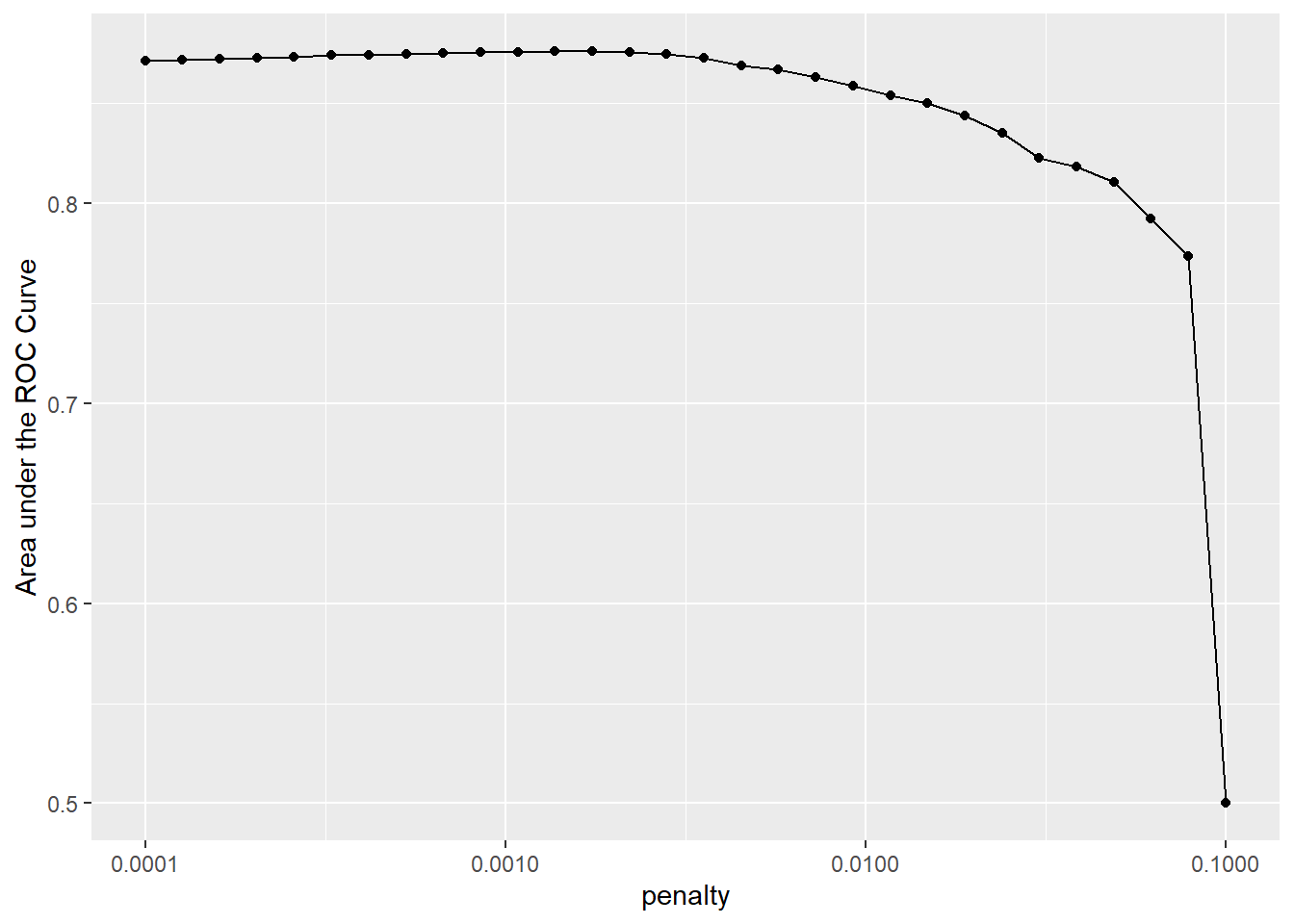 lr_mod = logistic_reg(penalty = tune(), mixture = 1) %>%
