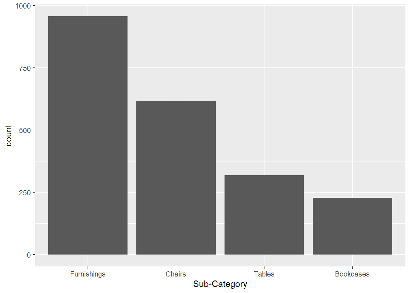 ggplot(aes(x = reorder(`Sub-Category`,`Sub-Category`,function(x) - length(x)))) +