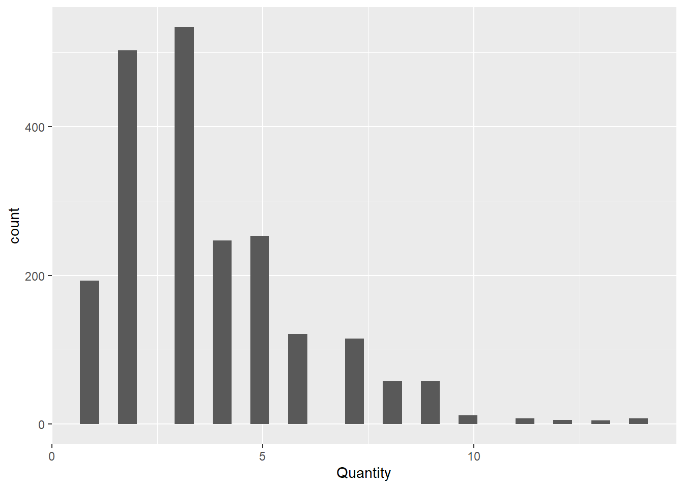 ggplot(aes(x = Quantity)) +