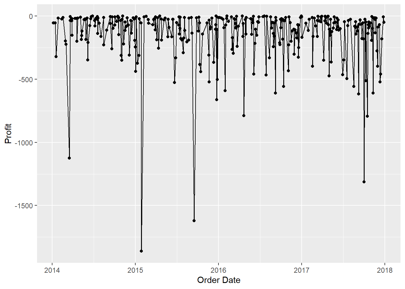ggplot(aes(x = `Order Date`,y = Profit,group = 1)) +